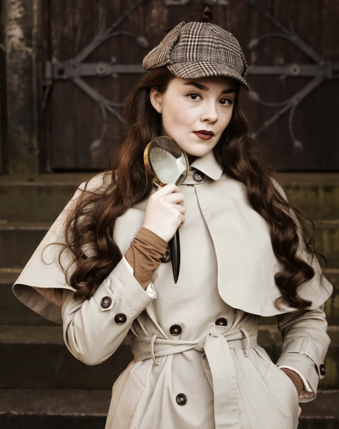 Sherlock Holmes – Tweeds, long coats, pipe or magnifying glass—brooding intellect with a gothic detective edge.