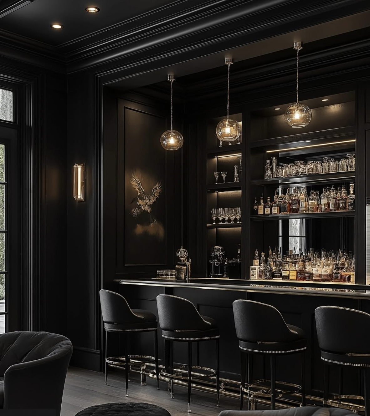 A gothic bar isn’t complete without candlelight to appreciate the pageantry of it all. Place votives near glassware to amplify glow.