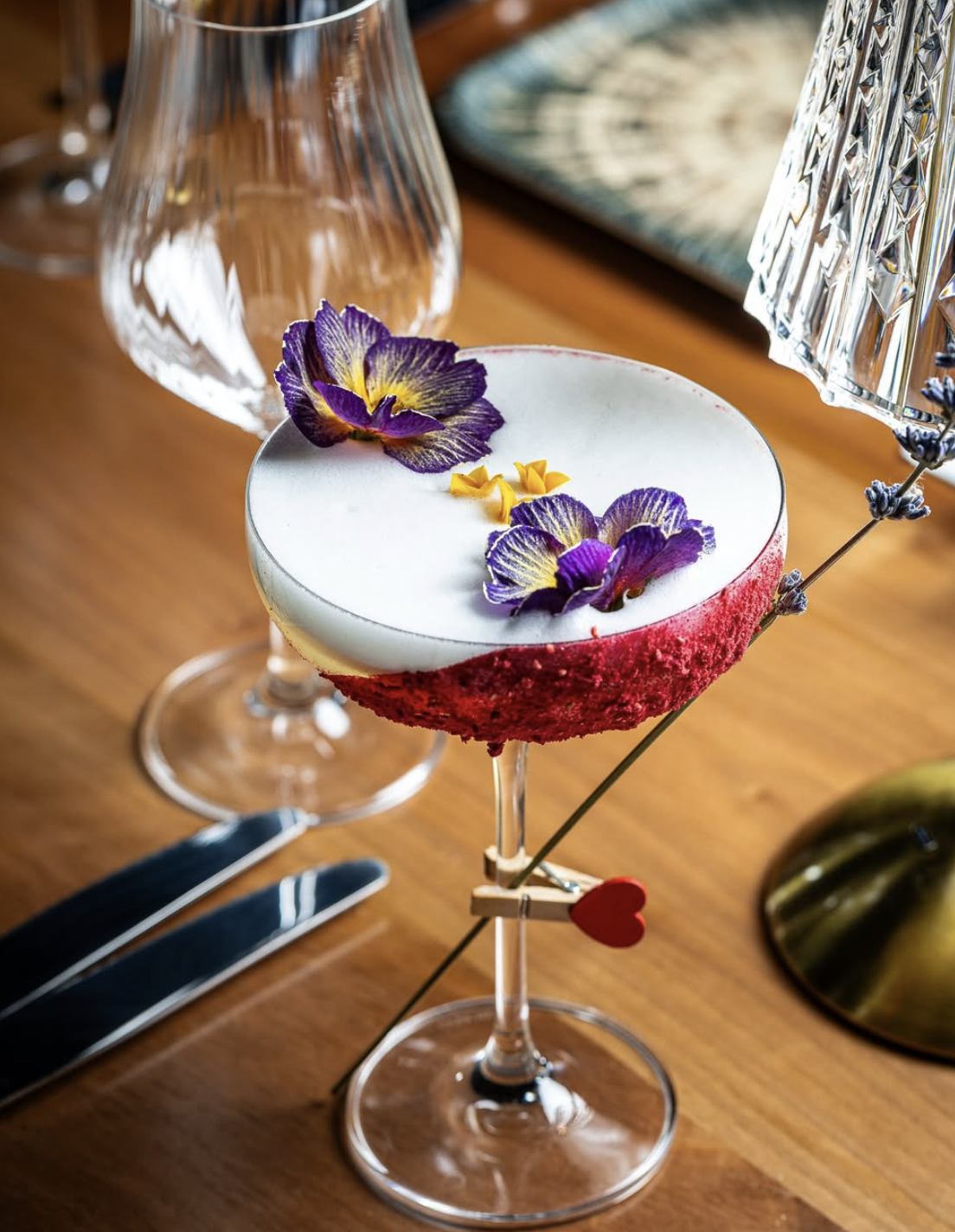 Dehydrated or fresh fruit, herbs and edible floral keep cocktails aligned with the seasons. Lavender for lemonade in summer, cinnamon sticks and anise in winter. Local (where possible), mindful, enchanting.