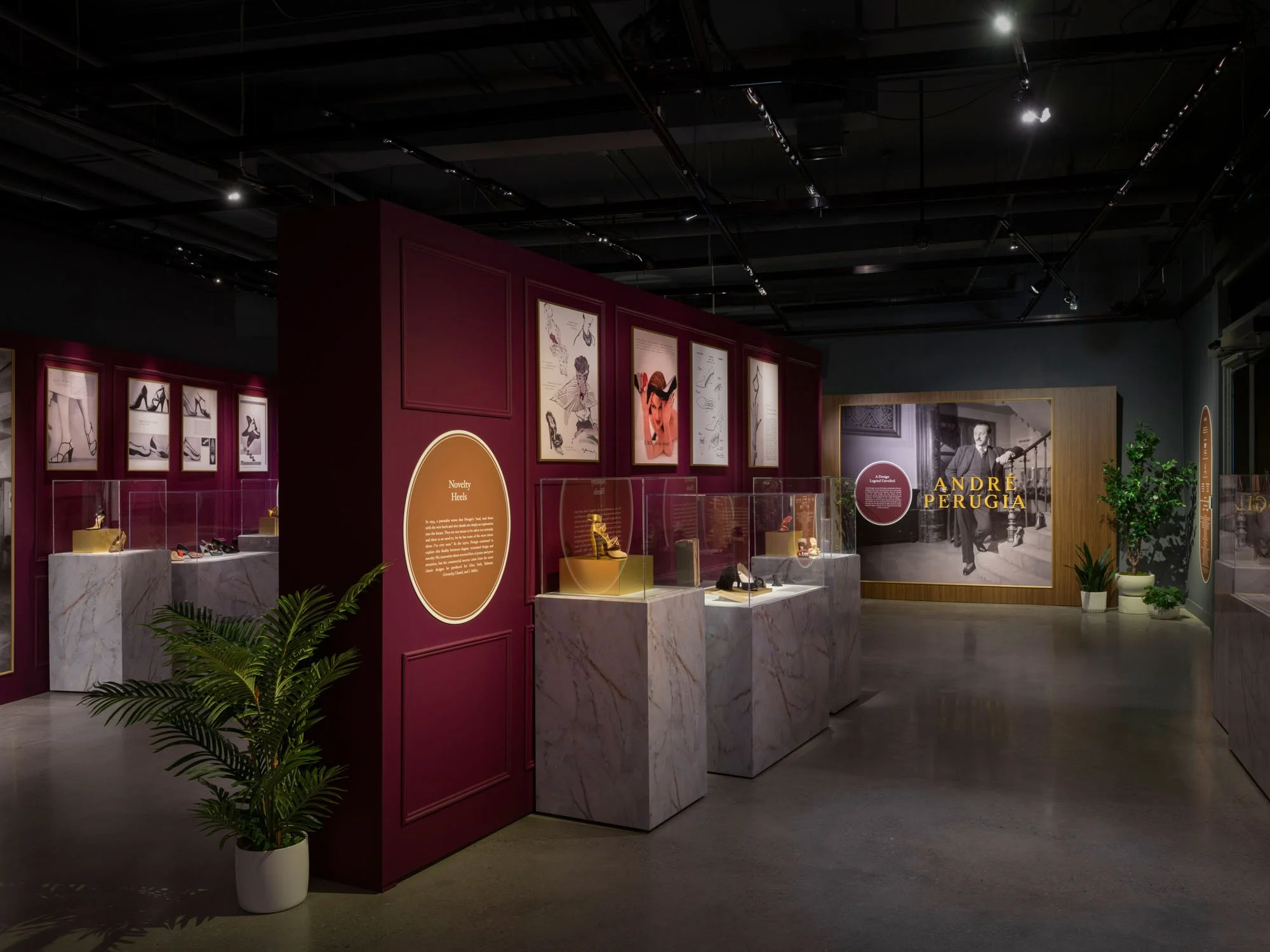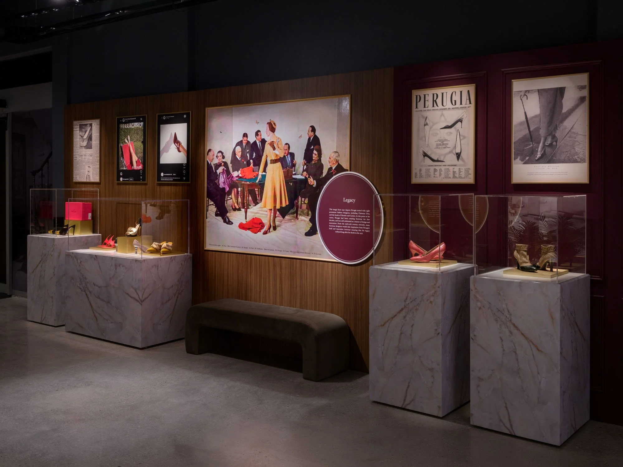 The installation itself is immersive — an environment that mirrors the sensual precision of Perugia’s craft. “We aim to design exhibitions that are experiential,” the Bassi shares. “These immersive spaces help visitors situate themselves in a different time and space and better understand the exhibit topic.”Velvet, marble and wood converge to evoke the opulent materials that defined Perugia’s own aesthetic. Every room feels like a salon suspended between decades, where invention masquerades as ornament.