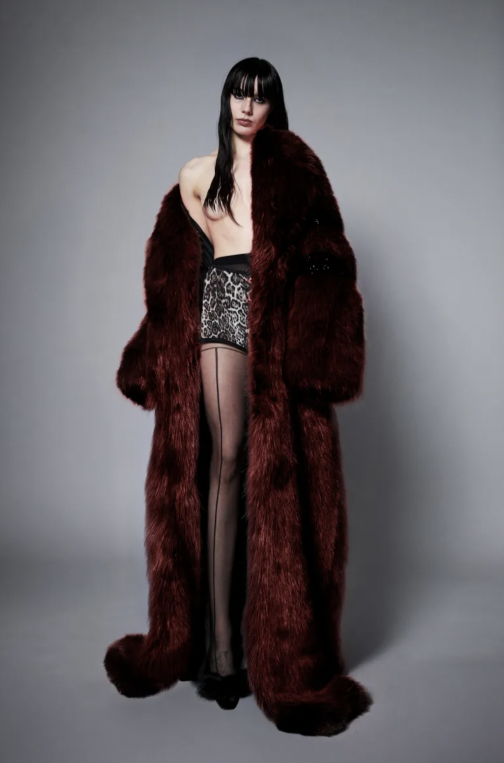 Fishnets and corsetry return as established house language.